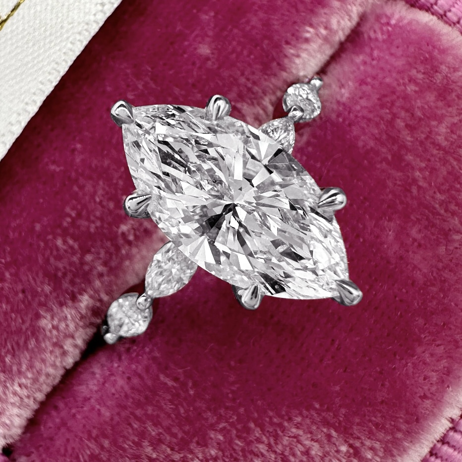Золотое помолвочное кольцо с бриллиантами огранки Маркиз 3.0 карат